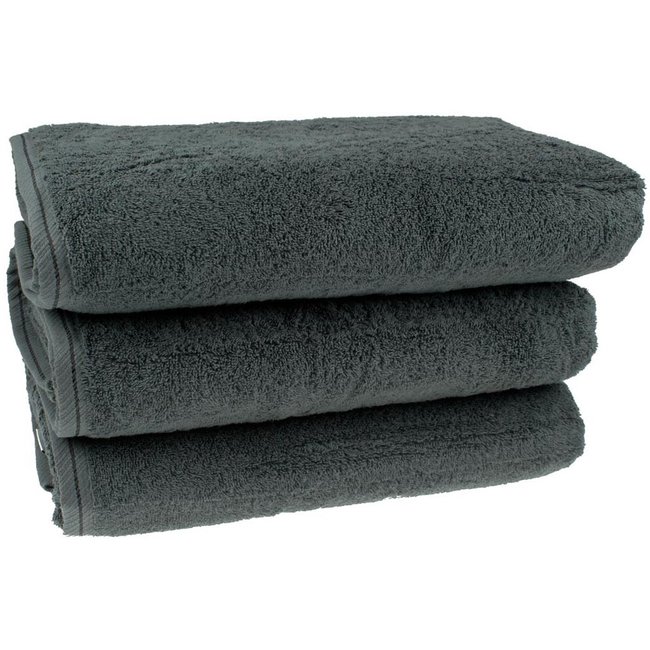 Antracietkleurige badhanddoeken van Neweco® in royaal formaat van 100x150 cm, gewoonweg ideaal op iedere badkamer en geschikt voor particulier en commercieel gebruik, bovendien is antraciet niet voor niets een van dé populairste kleuren uit onze collectie hotelkwaliteit badtextiel. Dit type badhanddoek van walk- badstof is gemaakt van de beste garens, gesponnen uit gekamd biologisch katoen. Door het kam procedé is het katoen vrij van oneffenheden, heeft een optimaal absorptie vermogen en is bovendien pluisarm. Ook de afwerking is van hoogwaardig niveau met dubbel gestikte zomen aan de lange zijde van de badhanddoek en gaan hierdoor tot wel 30% langer mee dan reguliere badhanddoeken.